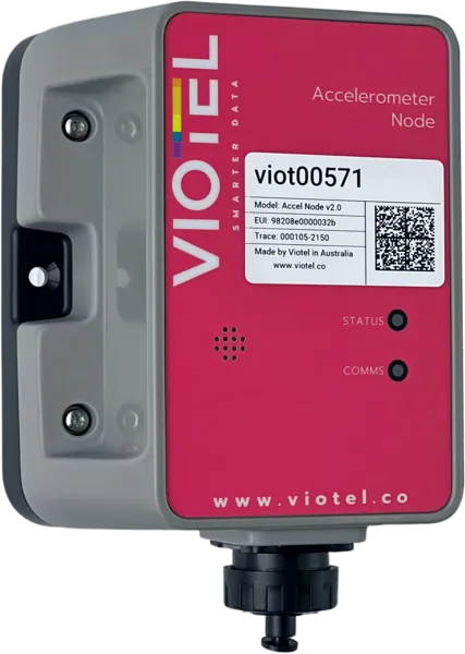 The Viotel Accelerometer is a wireless sensor designed for real-time vibration and acceleration monitoring in geotechnical and structural applications. This compact, battery-powered device provides continuous measurement of ground and structural movement, making it ideal for monitoring bridges, tunnels, dams, buildings and mining operations.